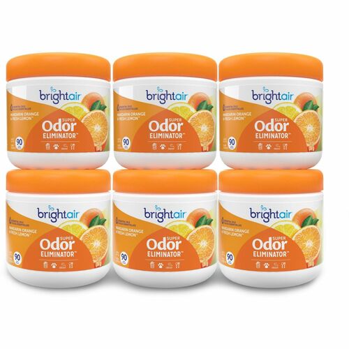 Enhance your productivity with the Bright Air Air Freshener, Orange/Fresh Lemon, 14oz, 6/CT from Bright Air. Perfect for professionals in the janitorial & facility supplies category, this product combines quality and style. Transform your everyday odor problems into a pleasant fragrance experience. Practical odor eliminator freshens any space with a natural clean scent while effectively eliminating unwelcome odors. Super Odor Eliminator Air Freshener is safe to use around the office and any other areas you want to keep fresh. It freshens up to 90 days.