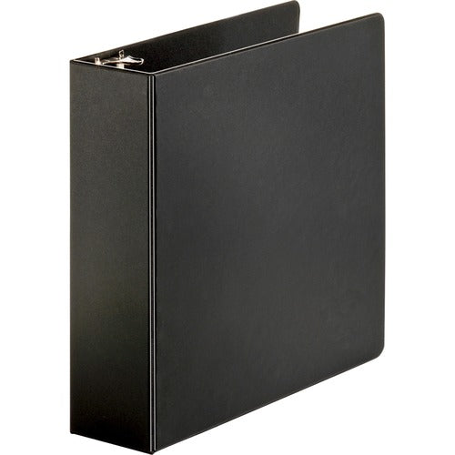 Enhance your productivity with the Business Source Binder, Round Rings, 3" Capacity, 11"x8-1/2", Black from Business Source. Perfect for professionals in the office supplies category, this product combines quality and style. Basic round-ring binder features two triggers on the ring mechanism that provide easy access to your documents. Back-mounted metal rings allow pages to lie flat. Clear pockets inside front and back covers offer extra document storage with a 30-sheet capacity for each pocket. Design also features a sturdy chipboard core and exposed rivets. Three-ring binder is made of polypropylene.