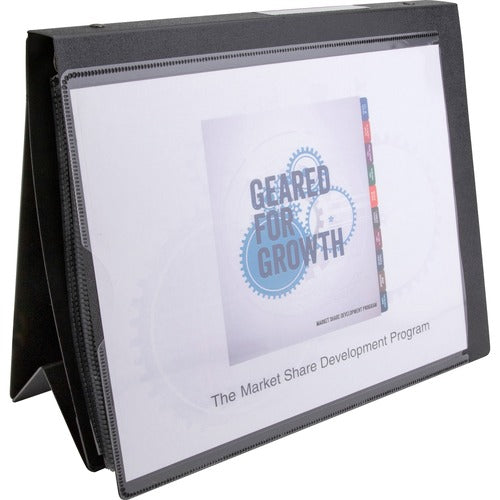 Enhance your productivity with the Business Source Presentatn Binder, w/10 Sht Protectors,1" Cap.,8-1/2"x11",BK from Business Source. Perfect for professionals in the office supplies category, this product combines quality and style. Presentation ring binder offers a landscape orientation and 1" capacity. Store pamphlets or other documents in the three-hole punched internal pockets. Ring binder includes 10 vinyl sheet protectors that are all top-loading. Design also includes a business card holder and label holder on the spine. Binder contains recycled material.