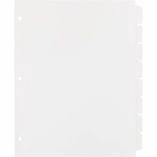 Enhance your productivity with the Business Source Index Dividers, 3HP, 8-Tab, 25 ST/BX, 11"x8-1/2", White from Business Source. Perfect for professionals in the office supplies category, this product combines quality and style. Customize tab titles and create professional dividers using these index dividers and laser printers. Standard software programs provide label layouts for quicker and easier formatting. The labels virtually disappear when applied to tabs on the side of dividers. Dividers are three-hole punched with Mylar reinforcement around the 9/32" holes for use in standard binders. Dividers include easy-to-follow instructions.