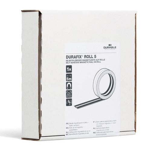 Enhance your productivity with the Durable Office Products Roll, Magstrip, 16-1/2"Wx5/8"H, Black from Durable Office Products. Perfect for professionals in the office supplies category, this product combines quality and style. Attach documents quickly and easily with the Durafix Roll. Simply stick the magnet to your chosen surface, open the clip, place the note inside and close. Customizable strip roll can be cut to size to fit any application. Self-adhesive attachment allows a uniform appearance on smooth surfaces such as cabinets, glass doors, shop windows and whiteboards. Self-adhesive will not leave a residue when removed.